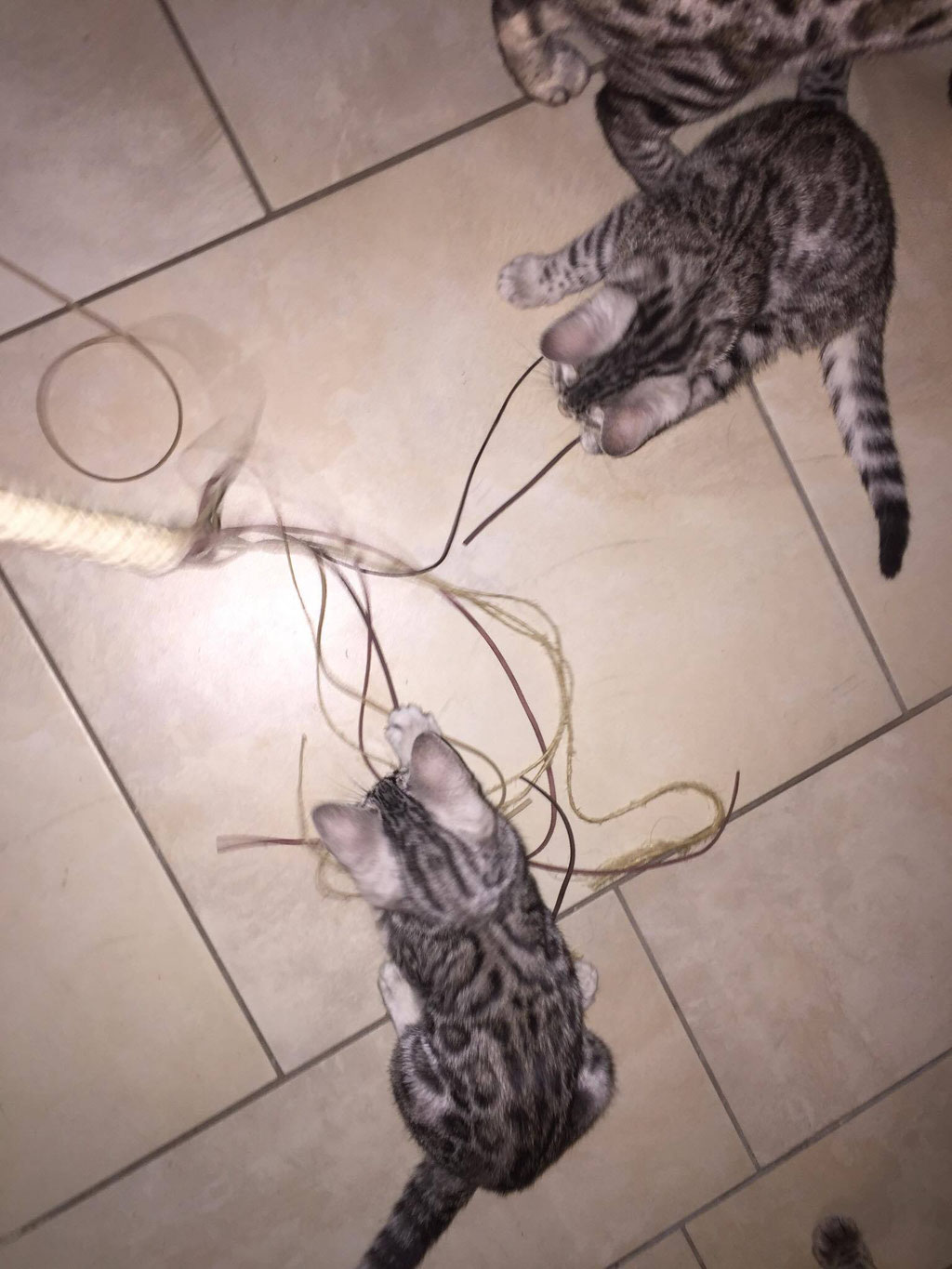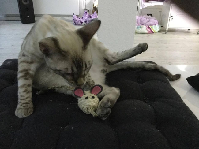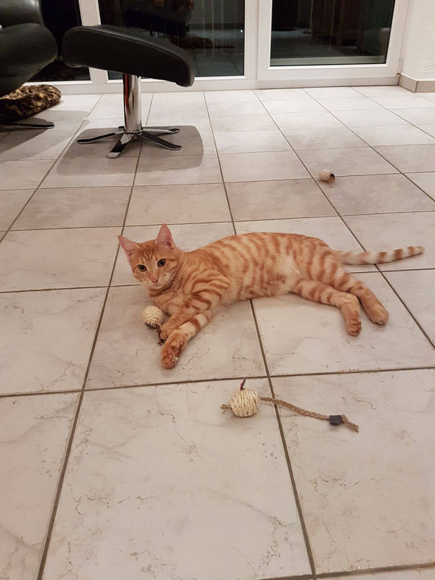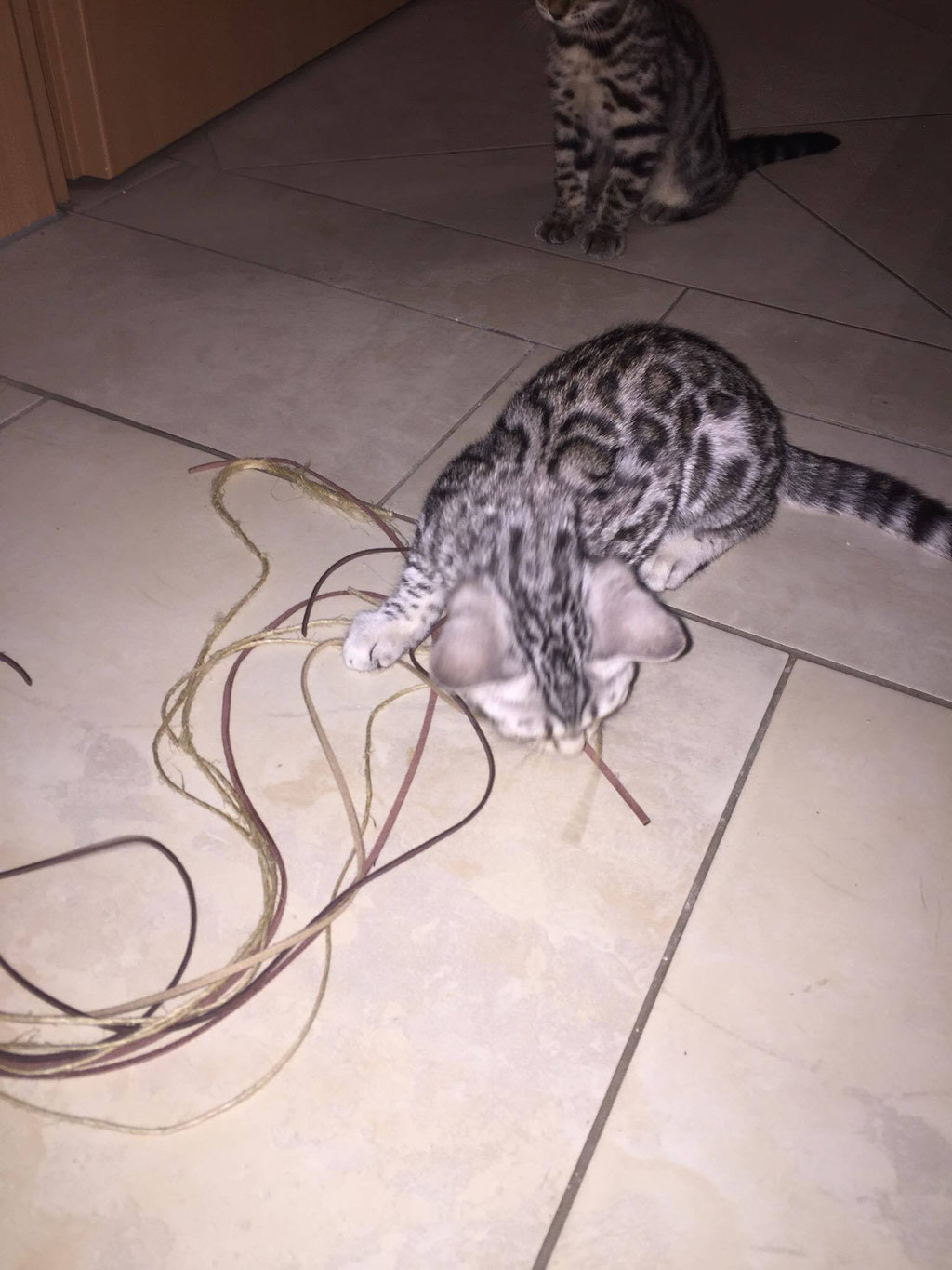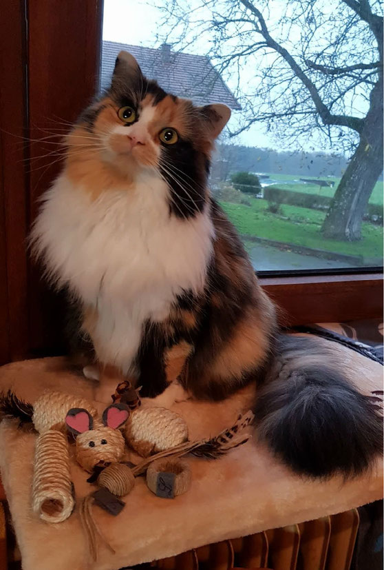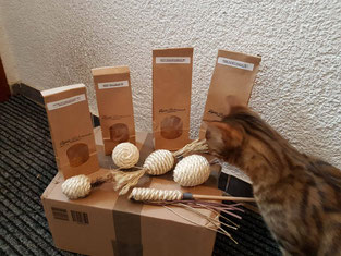 Ich danke Jeanine für diese zuckersüßen Schnappschüsse von ihren wunderschönen fellnasen. Auf den Bildern spielen die 2 mit einem Sisalbonbon und einem Mäuschen.