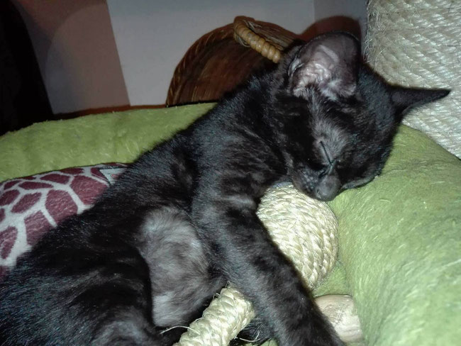 Smoky spielt auf dem 2. Foto mit einem Sisalbonbon.